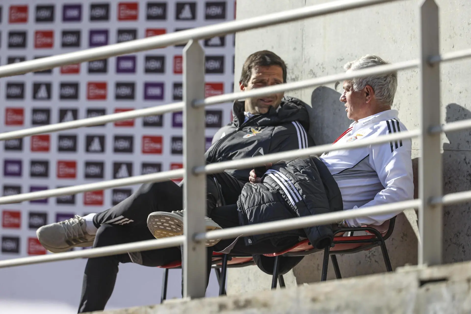 José Mourinho e o adjunto João Tralhão, e os jogadores António Silva, Prestianni, João Rego, Rodrigo Rêgo e Tiago Freitas estiveram na manhã desta segunda-feira no Benfica Campus a assistir ao jogo dos sub-23 do Benfica contra o Estoril, da 18.ª e última jornada da Série B da Liga Revelação. Os encarnados venceram por 1-0 e acabaram esta fase no primeiro lugar, com 35 pontos, seguindo para a fase de apuramento de campeão